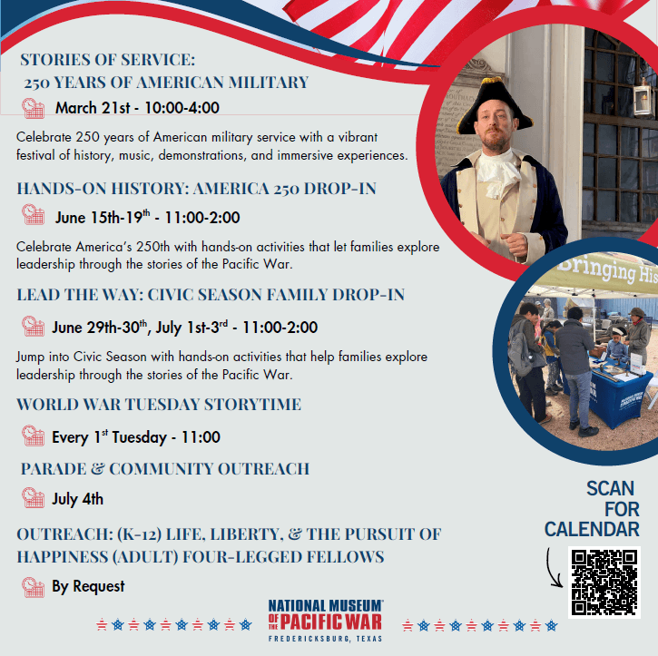 Join us this summer for Hands-On History: America 250 Drop-In, a family-friendly program that explores 250 years of American history through the lens of leadership in the Pacific War. Each day offers a new, engaging activity mixing history, art, STEM, music, and creative problem-solving to help families connect with the people and decisions that shaped the Pacific Theater and influenced the nation we know today. Whether you’re visiting the museum for the first time or returning for a summer adventure, Hands-On History: America 250 Drop-In offers meaningful, memorable opportunities to learn, create, and explore together.
