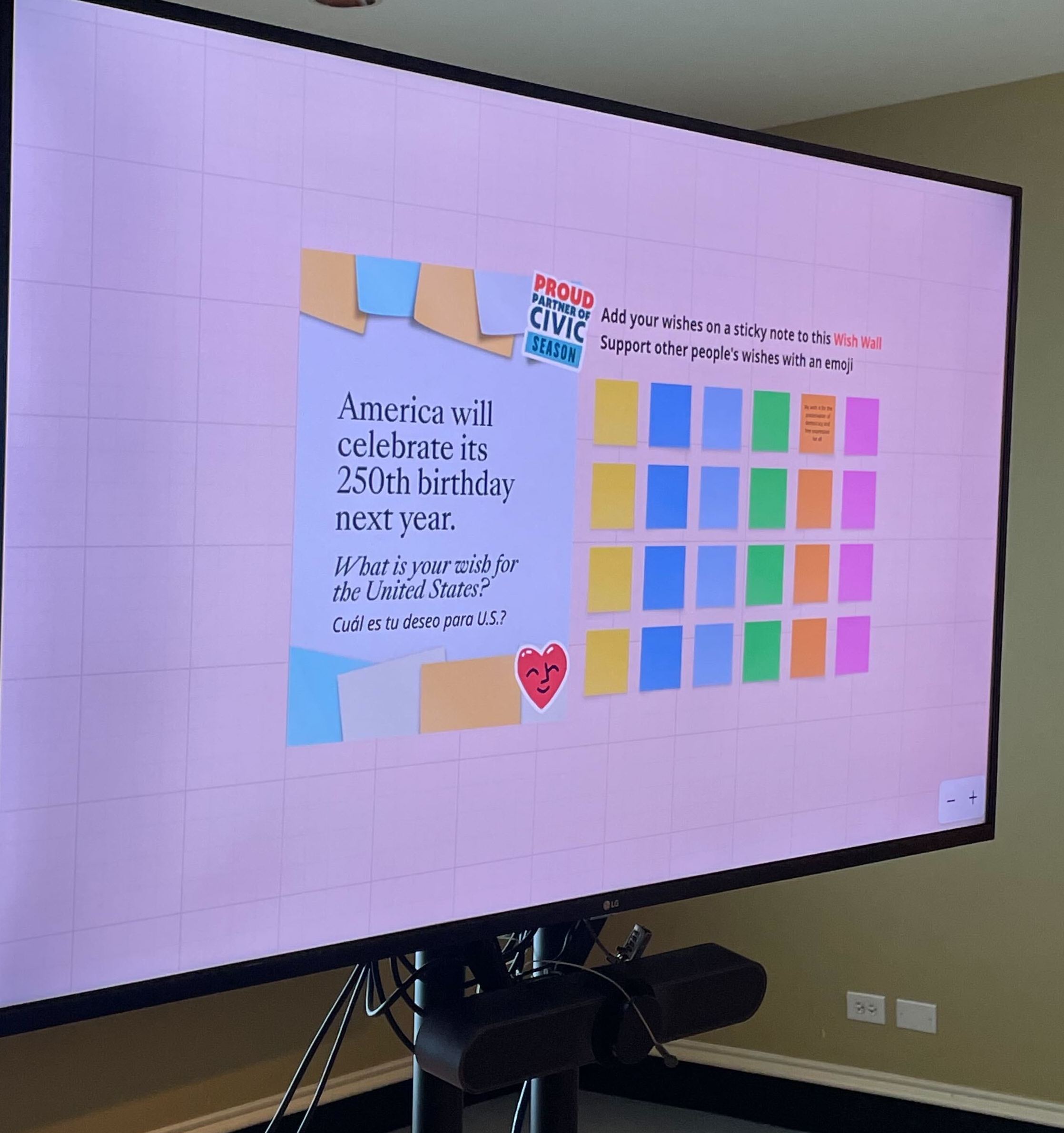 A flexible, low-lift and non-partisan avenue to add to your 250th experience. Wish Walls invite everyone to to contribute to our shared story, in our local communities.